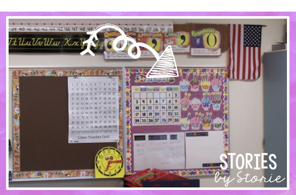 Can you see the birthday cupcakes next to the calendar? It’s an old picture, so it’s not the best quality. Each student’s name and birthday are written on the candle for the appropriate month. Those cupcakes came from a set like this one: