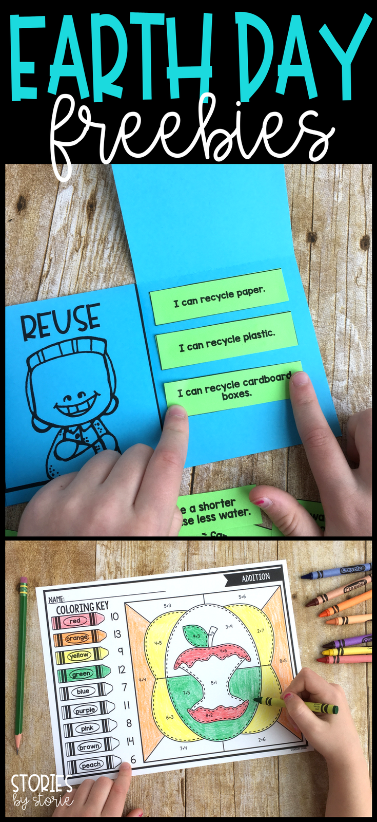 Do you need a quick activity for Earth Day? Take a look at this free sorting activity. Students sort examples under the reduce, reuse, and recycle flaps. There are also four color-by-code activities with an Earth Day theme.