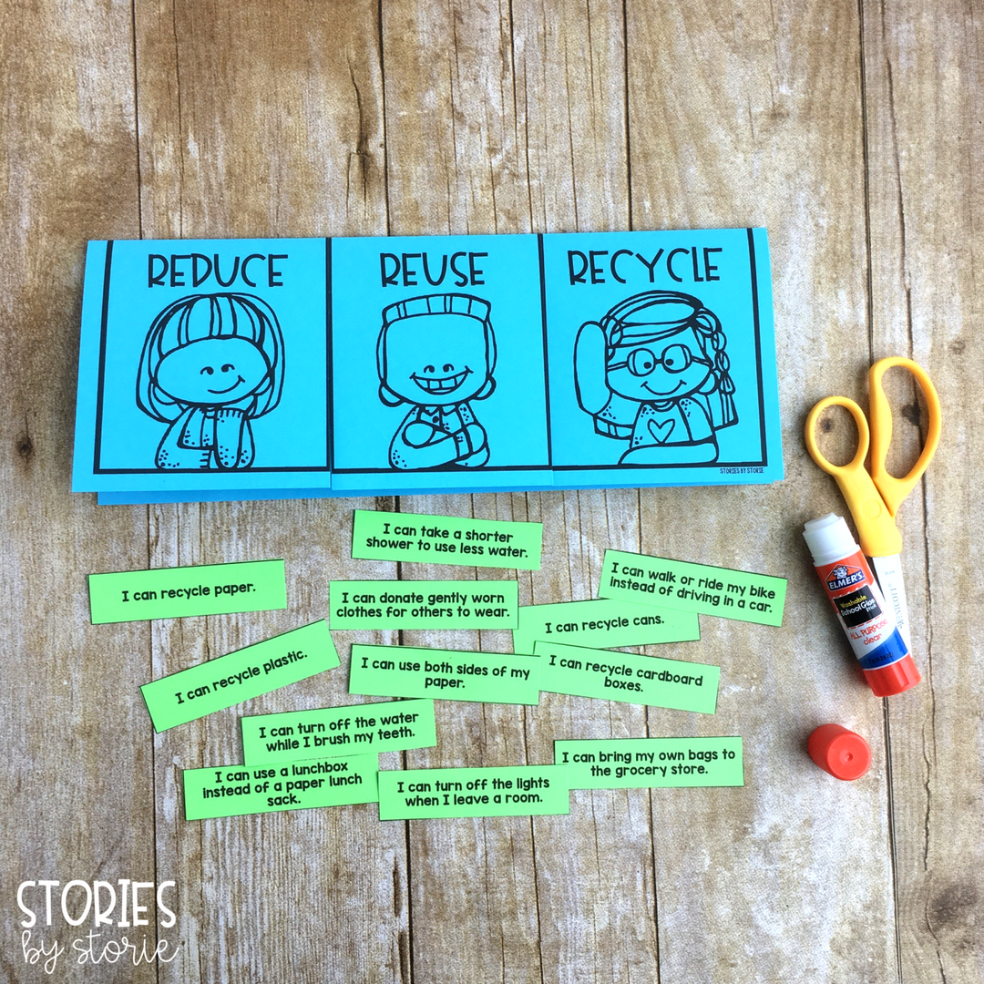 This free sorting activity is perfect to use near Earth Day. Students will glue statements under the reduce, reuse, and recycle flaps.