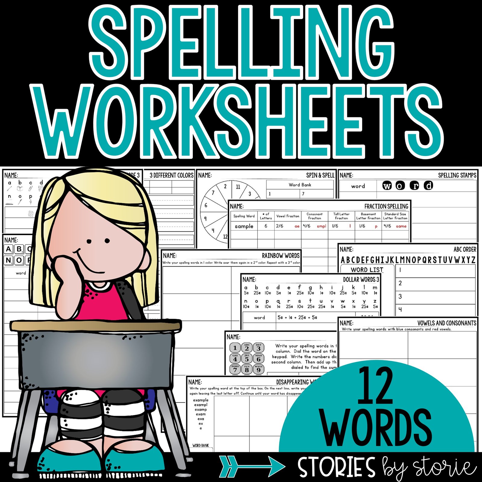 Spelling Worksheets for 12 Words