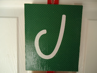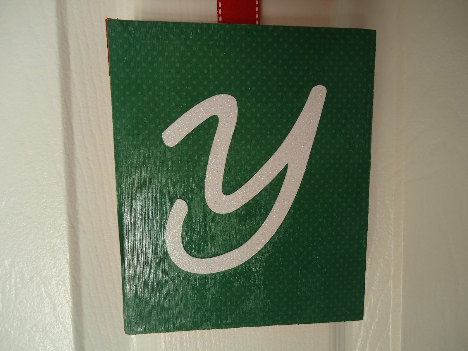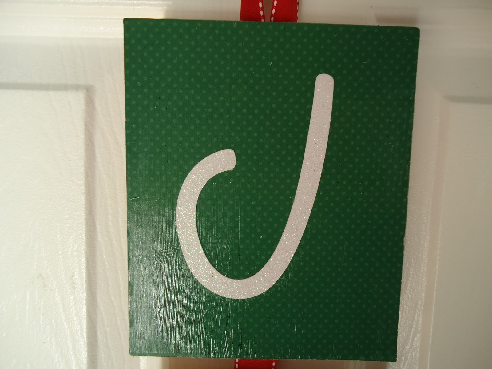 I had to do a close-up of the letters so you could see the patterns of the scrapbook paper. The J and Y letters were made with a glittery, pearl-colored paper, but the sparkle in the letters doesn’t show up as well in the photographs.
