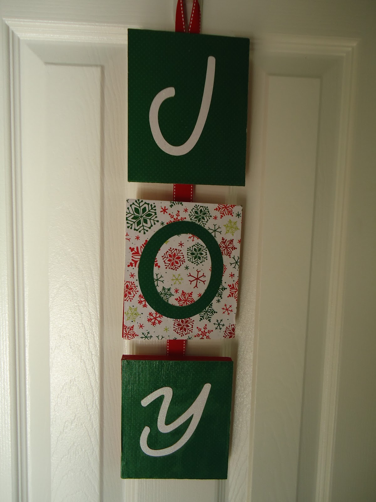 One of my friends (and colleagues) decided to host a Pinterest Party. Everyone brought an appetizer or dessert to share from a pin they found on Pinterest. The hostess had a craft prepared for all of us to complete. She had wooden blocks, Christmas-themed scrapbook paper, a Cricut machine, ribbon, and different kinds of glues/adhesives. I didn’t take pictures of the process, but thought I would share the finished project: