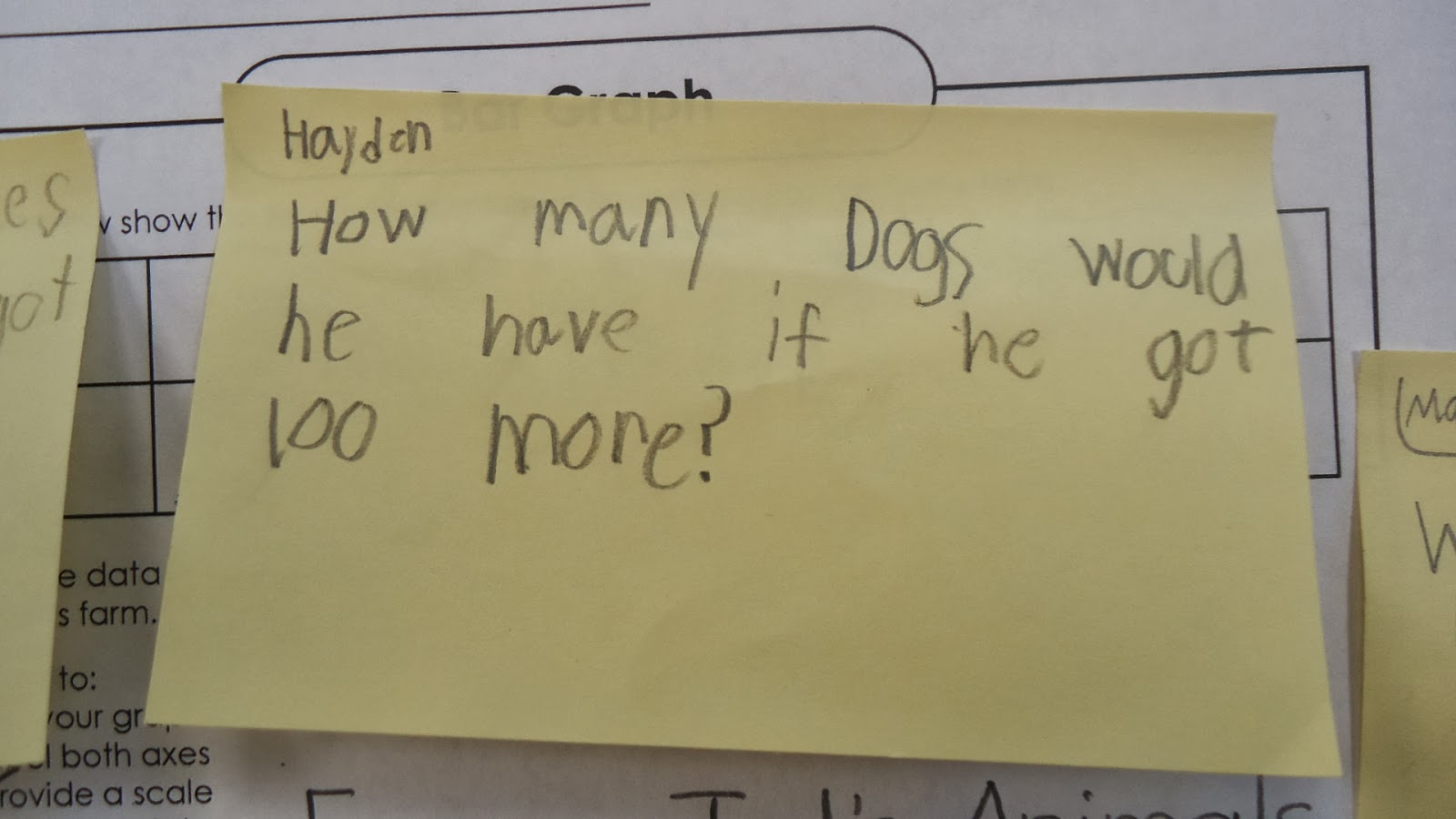 I was pretty proud that they took the time to write thoughtful questions. They really took to heart the types of questions they had been seeing during our previous graphing experiences.