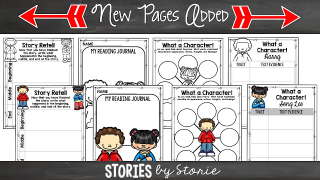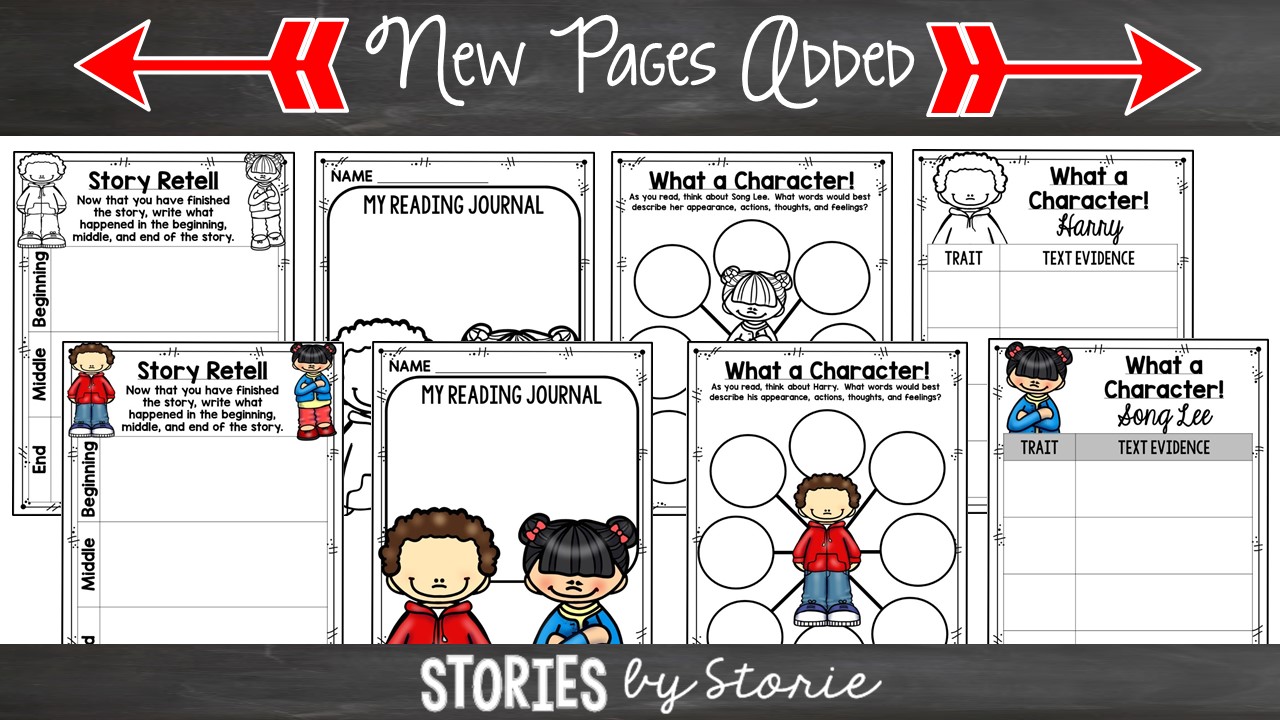 There are a few new pages added, too. There was already an option for writing a summary, but I know some teachers prefer to teach retell with this age group so now you have both options. I also added a reading journal cover so you can make reading packets. Finally, I included two options for character pages in each packet (character web and character traits with text evidence). All of the books with Song Lee in the title have the pages with Song Lee as the main character; the rest have Harry.
