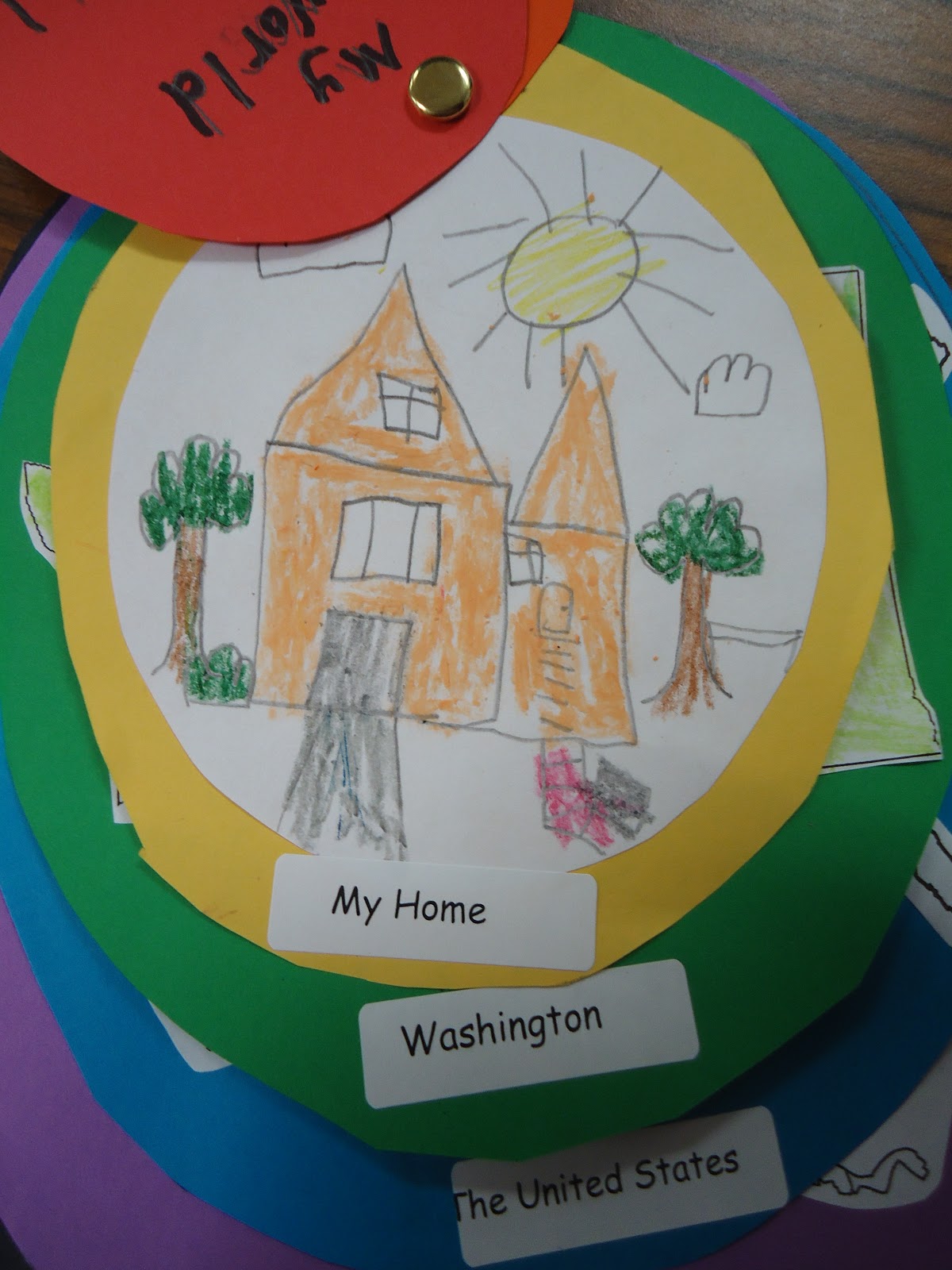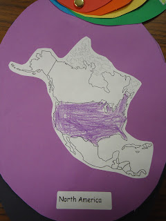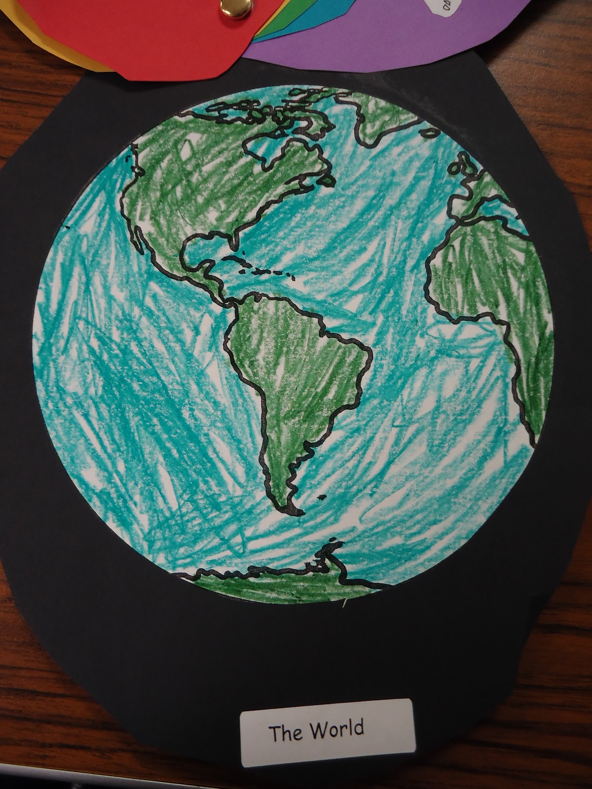 After a long journey I am finaly ready to share our version of the project. I provided the students with the maps, paper, labels, and oval templates. Their job was to trace and cut out the pieces. Since they did so much of the work, they are even more proud to show off their learning.