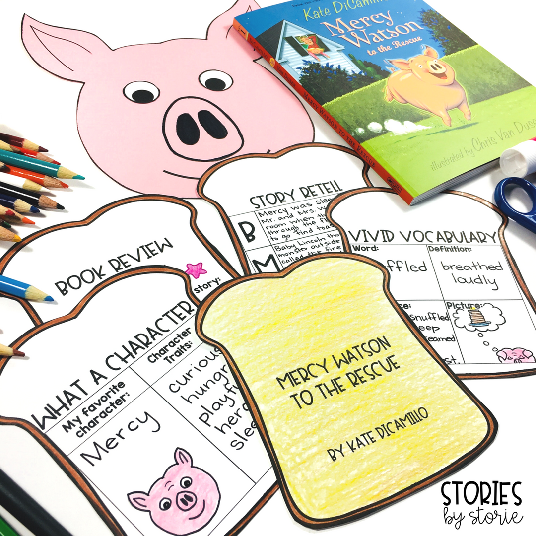 The Mercy Watson book series by Kate DiCamillo is a set of books that are perfect for first and second grade readers who are just getting started with chapter books. The series centers around Mercy, a porcine wonder who loves hot buttered toast. Each story features a new adventure with Mercy in the middle of it all. Whether you are reading these chapter books aloud to your class or using them with your small groups, here are some activities and resources you can use with your students.